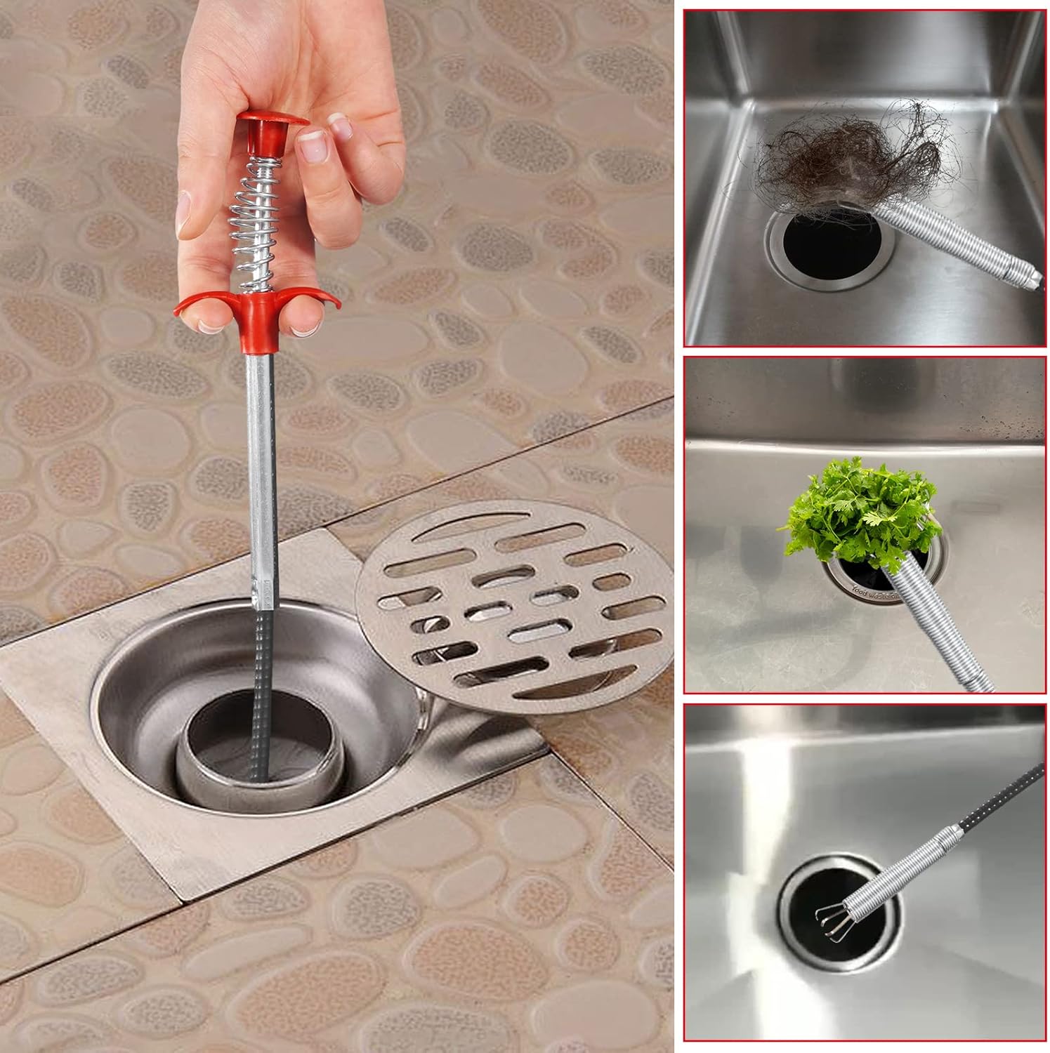 Material de acero flexible con garra retráctil atrapa el pelo, papel y residuos de Tamaño 62 cm de largo para cualquier Problema.
